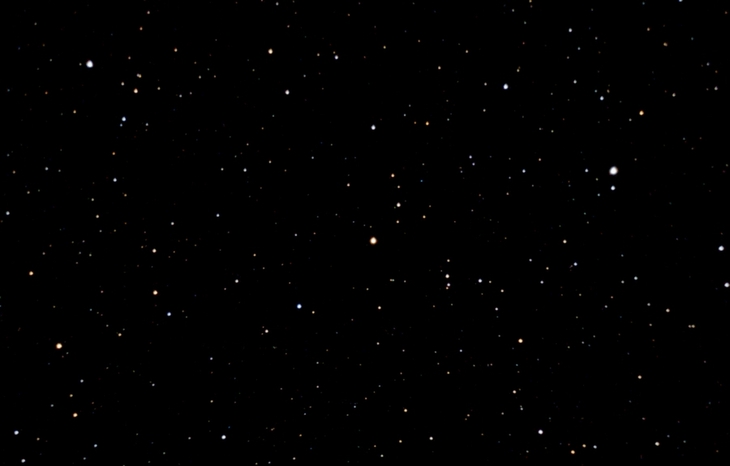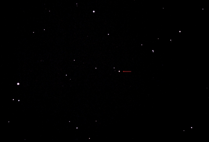 Barnards Stern (Bildmitte) zeigt eine rasche Eigenbewegung. Ich ermittelte sie astrometrisch mit 0,5% Abweichung - aus zwei Fotos, geschossen im Abstand von 6 Jahren (Daten und Ergebnis)