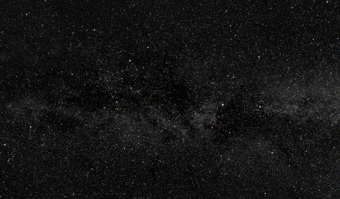 Ein Nebenprodukt der Weinviertler Meteornacht: Das Ultraweitwinkelfoto der Milchstraße lässt mehrere Dunkelwolken erkennen - in der Bildmitte der sogenannte Nördliche Kohlensack