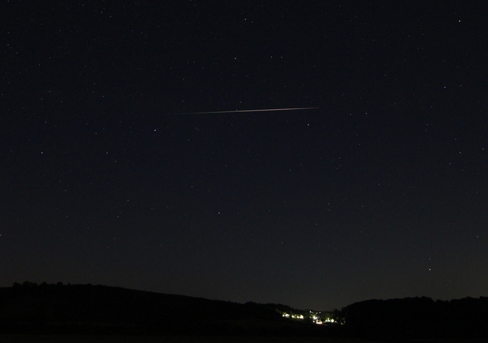 11.8.2024, 21:57 MESZ: Ein Perseide im Pegasusquadrat - endlich ist mir ein eindrucksvolles Meteorfoto geglückt (Weinviertel, EOS 650D, f = 16 mm, 2.8, 5s, ISO 1600)