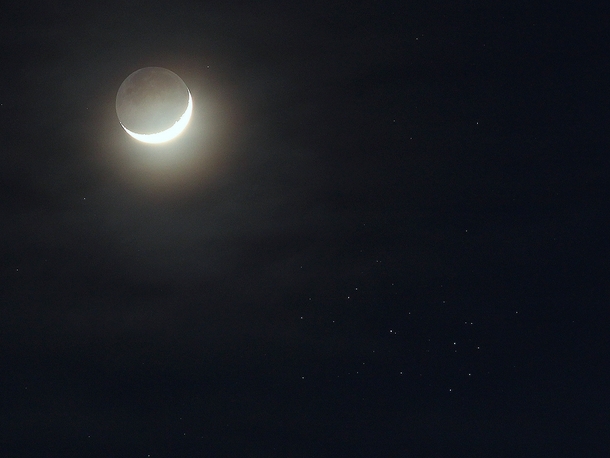 Stunden nach dem Rendezvous (s.u.) bedeckte der alte Mond die Venus am hellen Taghimmel. Ich filmte das Ereignis. Oben sehen wir die Venus eine gute Minute vor der Bedeckung (Daten)