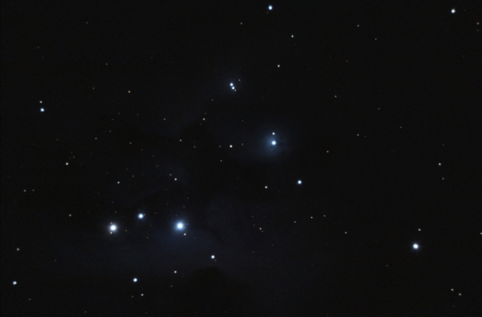 Man nennt diesen offenen Sternhaufen auch Plejaden oder Siebengestirn (f = 500 mm)