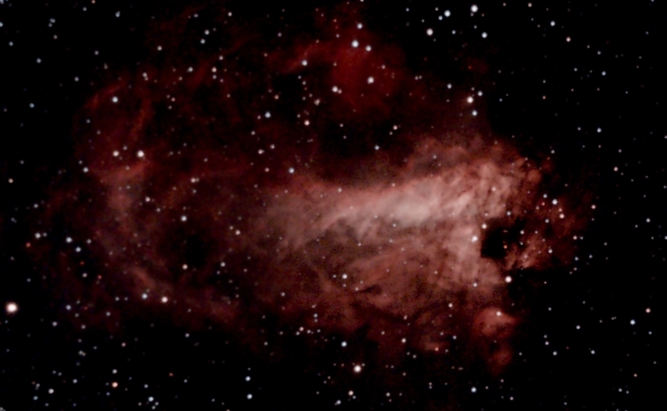 Das Kerngebiet des Gas- und Staubnebels M17 im Schützen - fotografiert unter und durch den lichtverpesteten Himmel über Wien (ohne Filter)