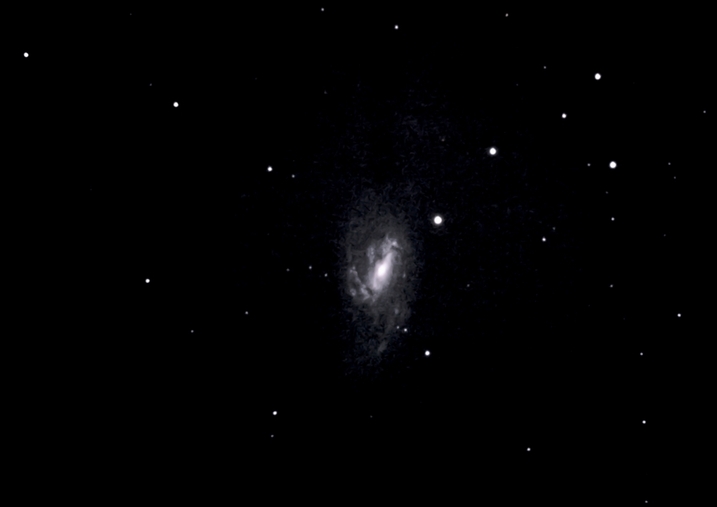 Die zentraleren Partien der Galaxie M66, 31 Mio. Lj. entfernt im Löwen (f=2000 mm). Spiralarme sind trotz Stadtlichts erkennbar