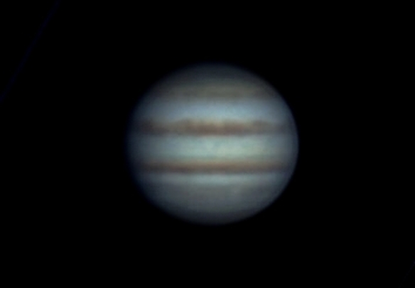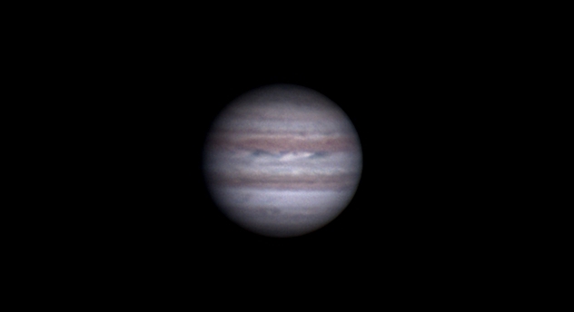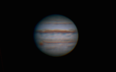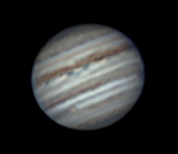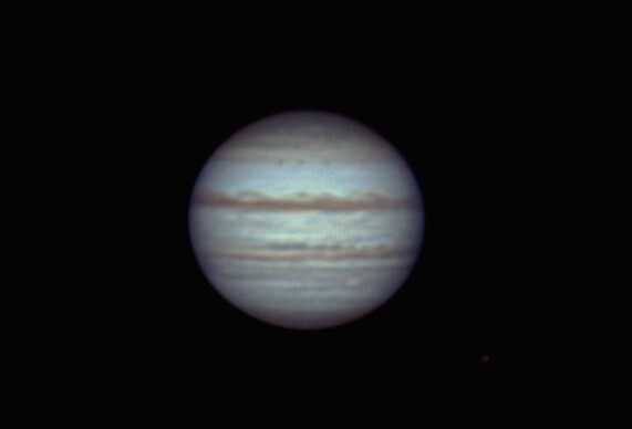 Das Seeing - wohl um 1,2" - halbiert die theoretische Auflösung meines Teleskops leider. Daher wirken die Details auf dem Jupiter trotz allem grob.