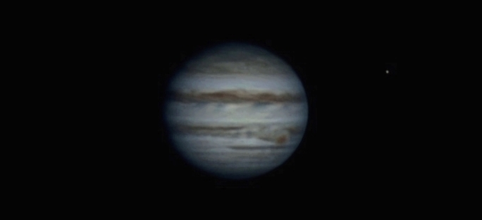 Jupiter bei ruhiger Luft am 15.2.2023, rechts sein Mond Io.