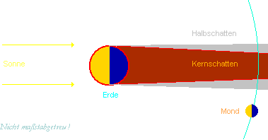 Die Erde wirft ihren Halb- und Kernschatten auch ins All hinaus.