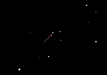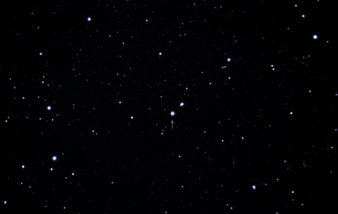 Gaia BH3 im Adler: Der Stern (11 mag) nahe der Bildmitte umrundet alle 11,6 Jahre ein stellares Schwarzes Loch. Erddistanz: knapp 2.000 Lichtjahre (Daten)