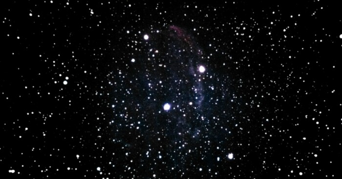NGC 6995, der Schleiernebel, ist Teil eines Supernova-Überrests im Schwan: Eingefangen mit 500 mm Brennweite und einem UHC-Filter. Hier strahlt v.a. doppelt ionisierter Sauerstoff