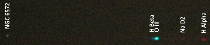 Emissionsspektrum des Planetaren Nebels NGC 6572 (Foto unten)