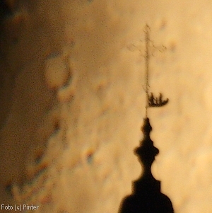 Distanz zur Kamera: 4,8 km (Kirche) bzw. 380.000 km (Mond).
